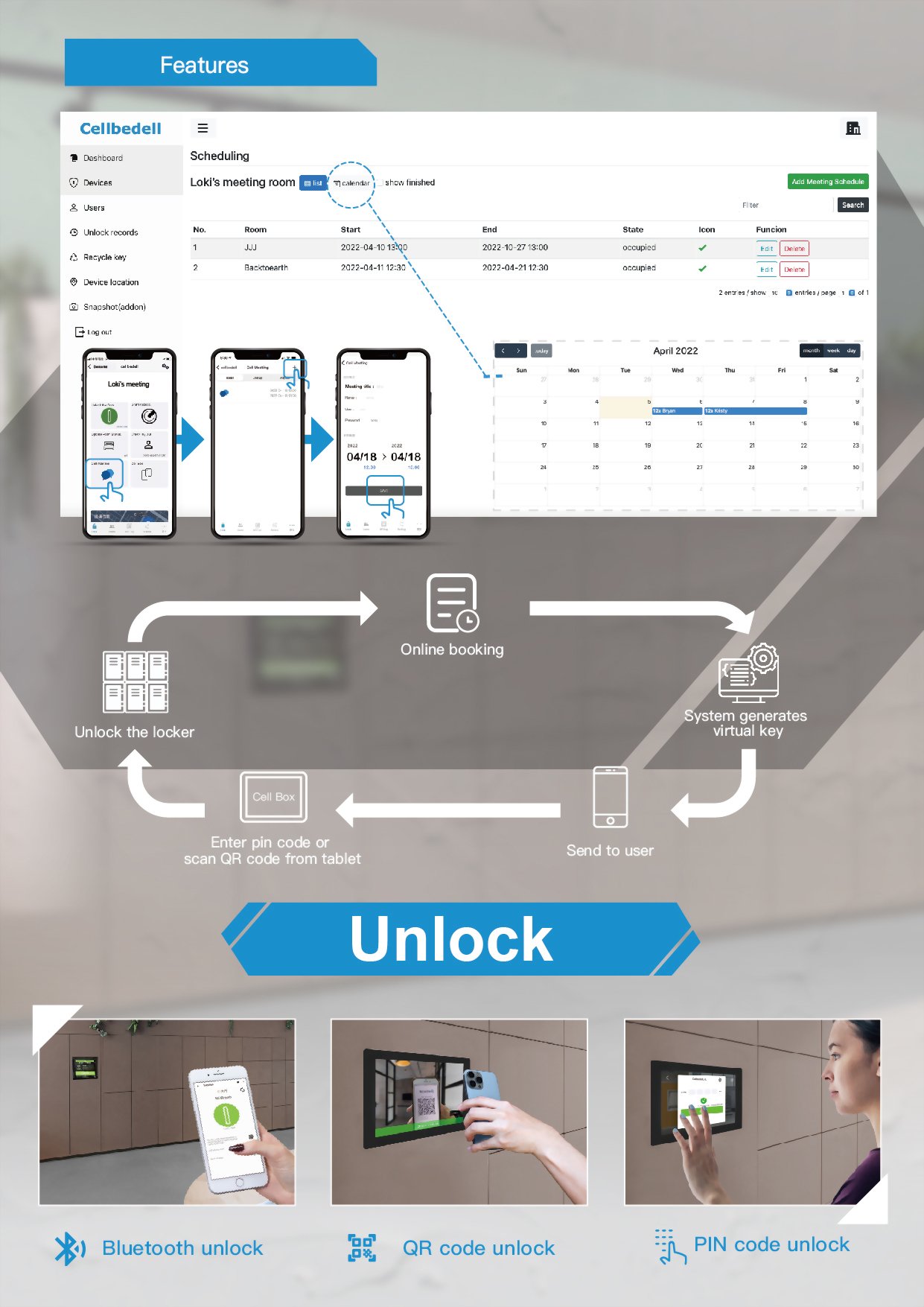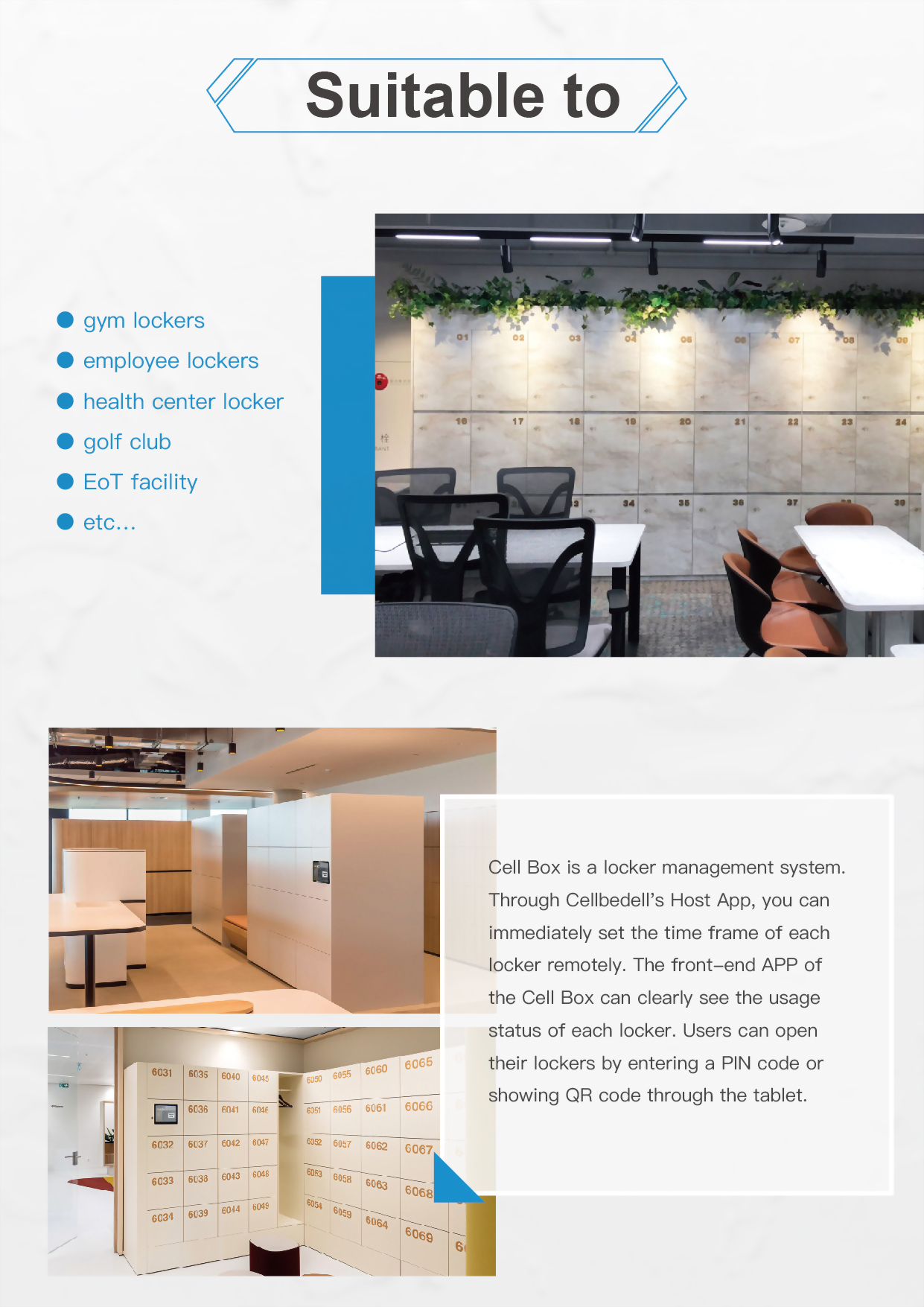 Cell Box is a locker management system. Through Cellbedell's Host App, you can immediately set the time frame of each locker remotely.